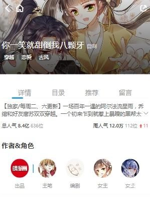 挑选一本你喜爱的漫画点击进入,里面有留言、目录以及开始阅读的选项。