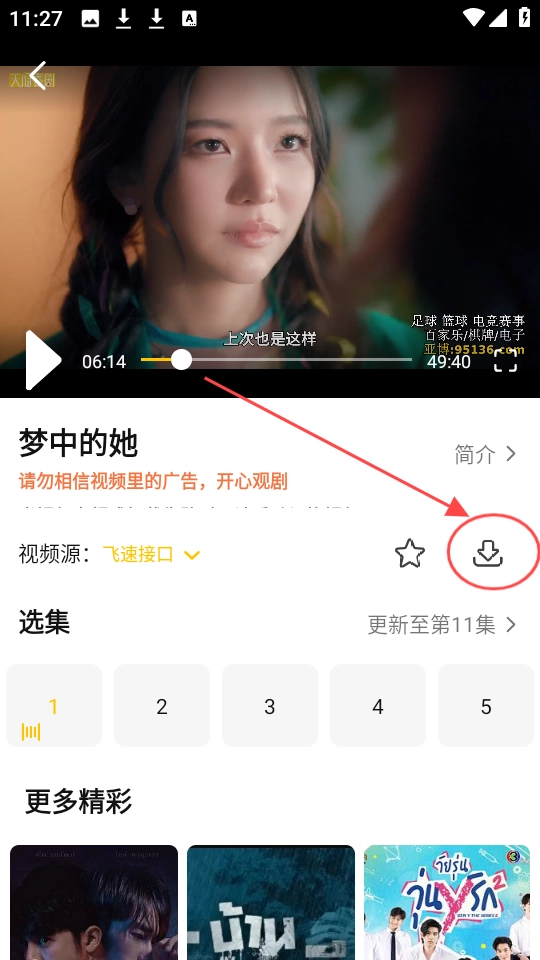 在视频播放界面,找到带有箭头指示标识的“”按钮,具体位置可参照图示。