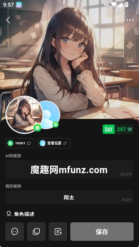 支持自定义AI角色的头像、性格、背景等信息,也可以使用他人分享的角色模板。