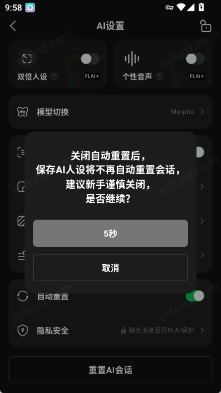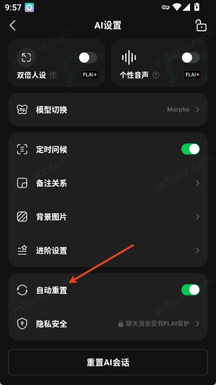 在设置页面里找到“自动重置”选项,它一般位于“进阶设置”或者和人设编辑有关的功能区域中。