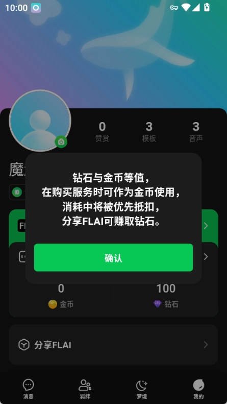 建议一开始先只修改昵称和头像,或者按照默认模板做些小调整,暂时别改动太多内容。借助个人中心里的分享功能,能得到所有被邀请注册的用户在3个月内消耗金币的10%作为分成奖励。