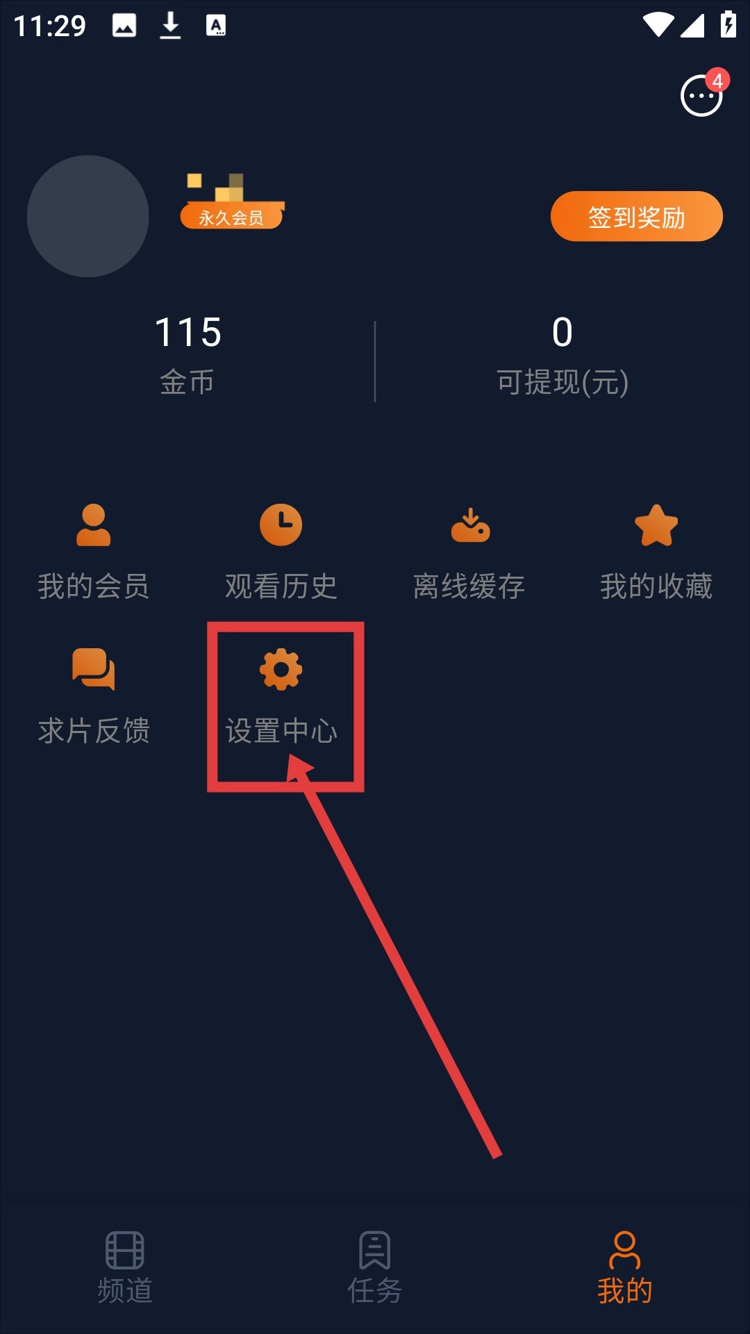 进入【我的】打开【设置中心】