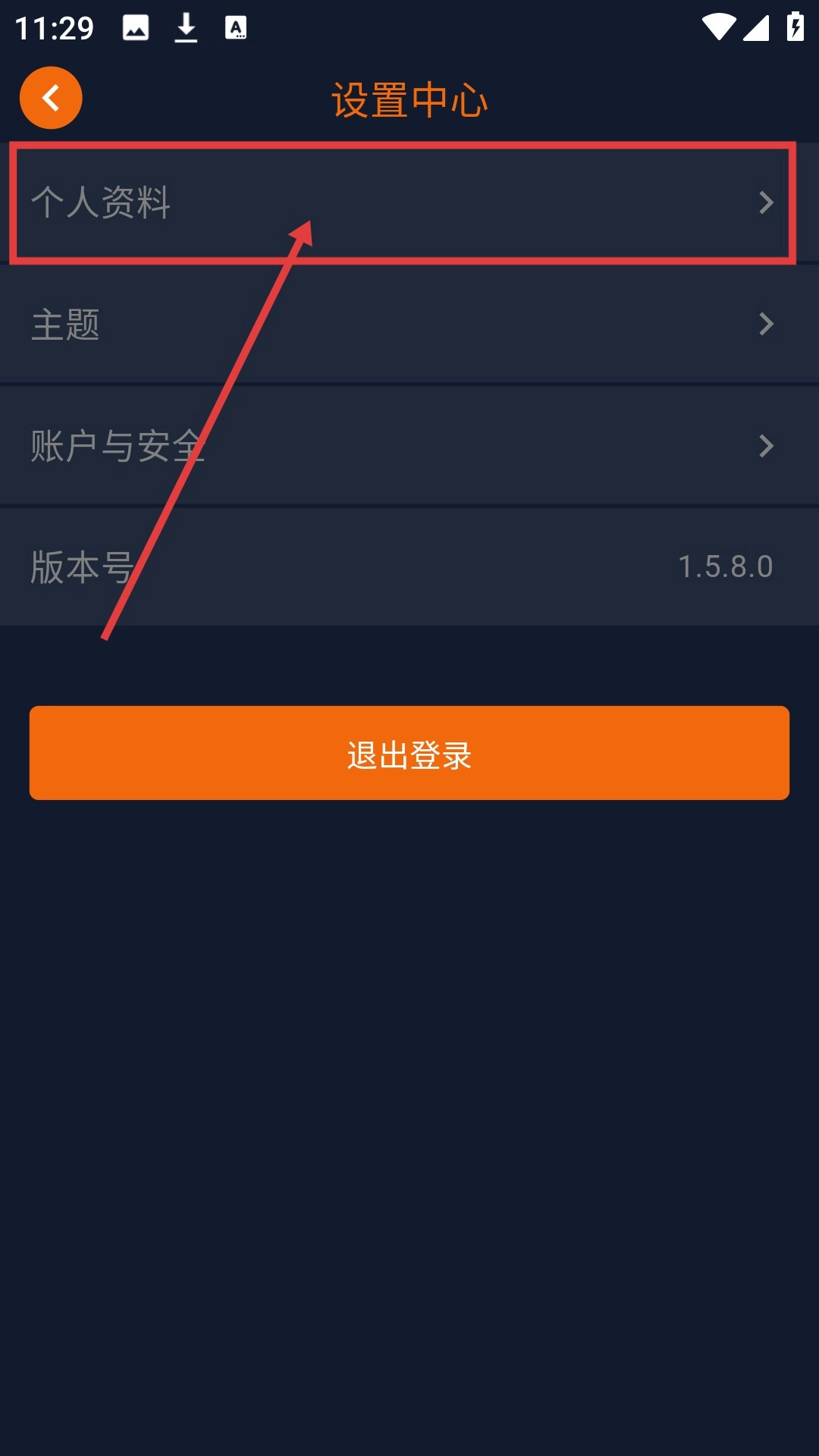 进入设置中心页面后,点击【个人资料】选项,就能进入个人资料的编辑页面啦。