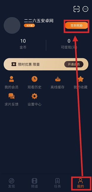 攒够金币后点击【我的】--[我的会员]