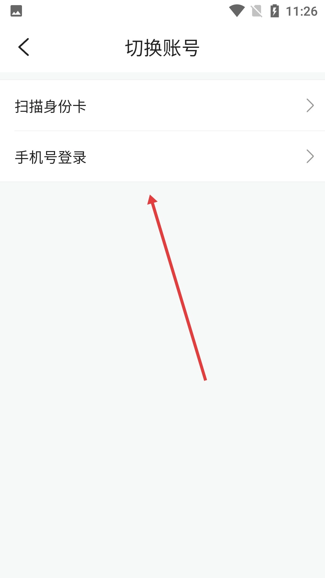 进入切换账号页面后,可通过【扫描身份卡】或【手机号登录】这两种方式来完成账号切换操作。