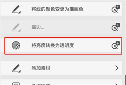 点击菜单图标→编辑,点击“将亮度转换为透明度”。