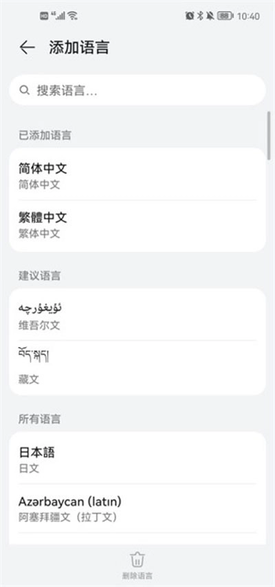 若找不到繁体中文选项,用户可点击“添加语言”,把繁体中文添加至设备里。