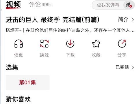 点击搜索栏可以直接搜索相应的动漫,如进击的巨人;
