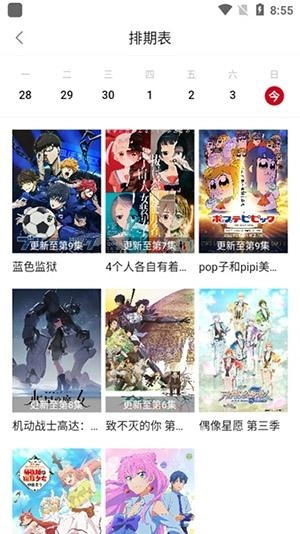 在软件排期表页面,我们为大家呈现的是当天最新更新的动漫,方便大家浏览了解。