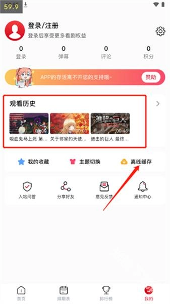 最后进入【我的】页面,就能查看刚才缓存的资源,还能查看观看历史和浏览记录等内容。