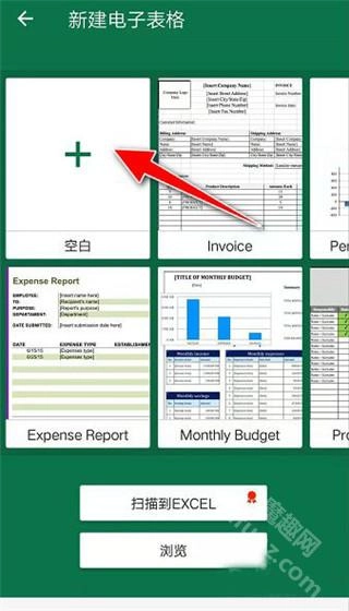 打开“新建电子表格”的操作界面,接着点击界面上的“+”符号按钮。