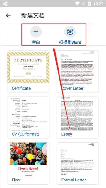 新建文档时,可选择“空白”模式,也能直接选择“扫描到Word”功能,我们选择创建空白文档。