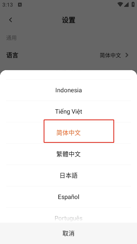 在出现的列表中选择“中文”即可。