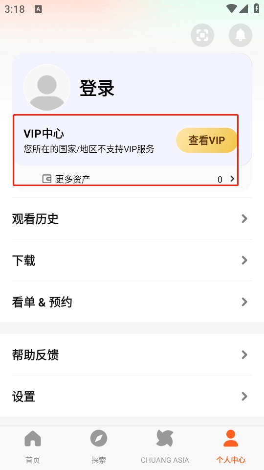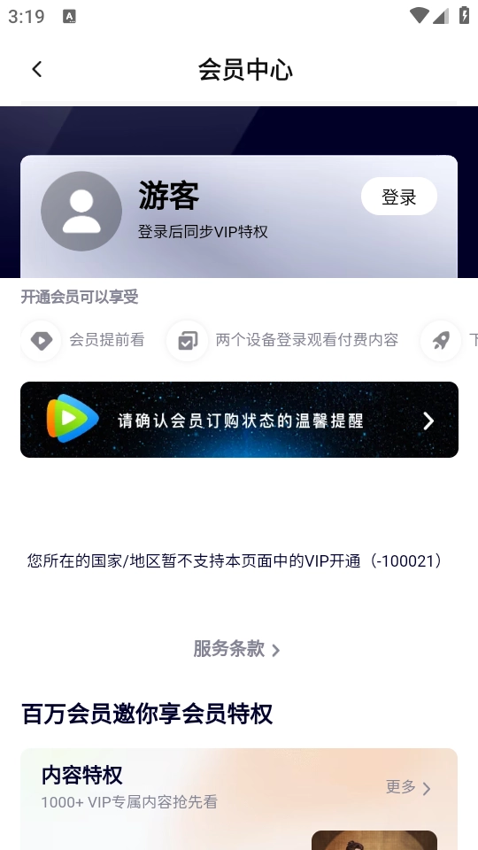 登录账号后,会显示“您所在的国家/地区暂不提供VIP服务”。