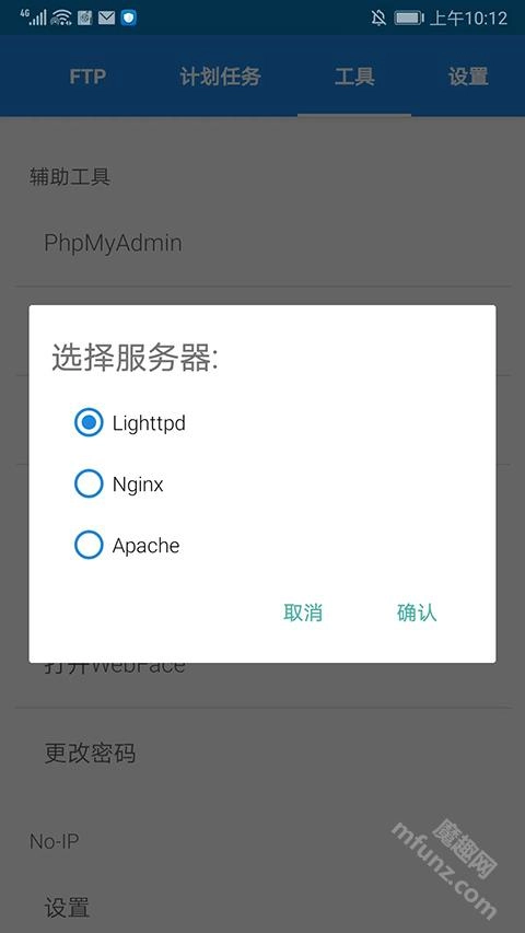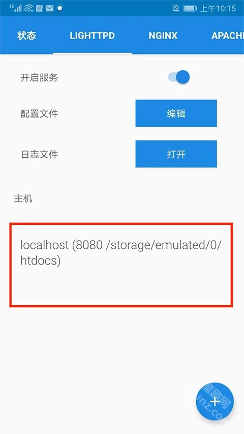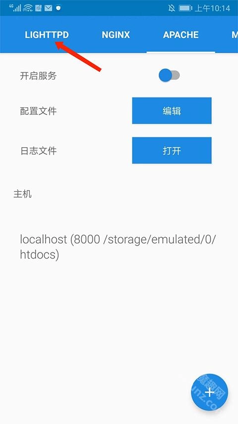 打开KSWEB应用后,点击上方的【LIGHTTPD】选项。