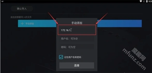 请输入连接设备的IP地址。注意:电视与连接设备需处于同一局域网环境中。