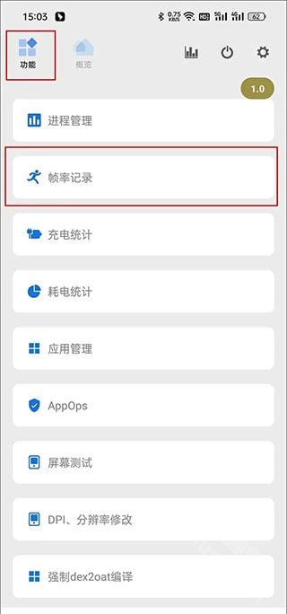 功能模块主要分为两大板块,分别是功能模块和概览模块。在功能模块里,用户能够开展帧率记录、充电统计、耗电统计、应用管理、活动/服务、温控编辑以及屏幕测试等操作;至于概览模块,用户可以查看手机的物理内存、CPU运行情况、手机电量、温度、型号以及开机时长等信息。