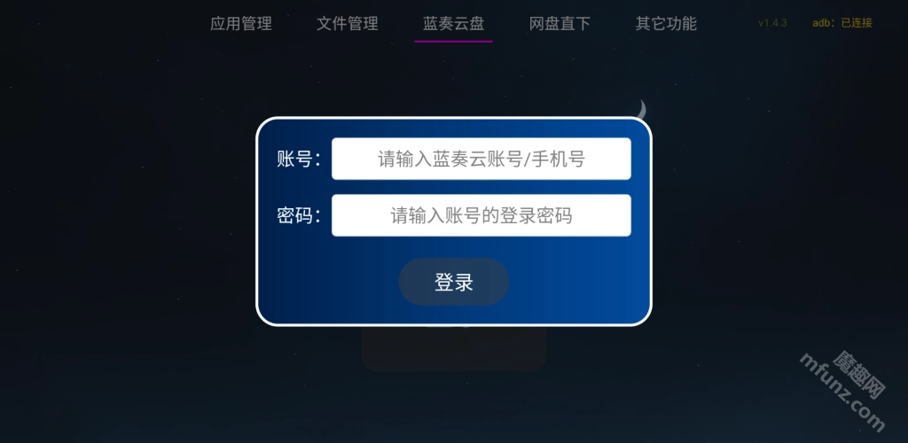 这款工具具备登录个人蓝奏云网盘的功能,能够直接安装网盘中存储的文件,但需要用户提前把相关文件保存到蓝奏云网盘里。