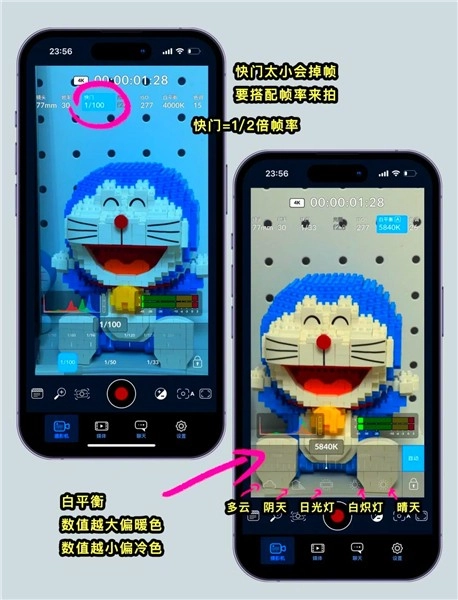 您能够依据不同的照明状况调节快门速度,也可以掌控画面里运动模糊的程度。这项设置既可以手动操控,也能通过滚动速度控制,从提供的速度选项里进行挑选。