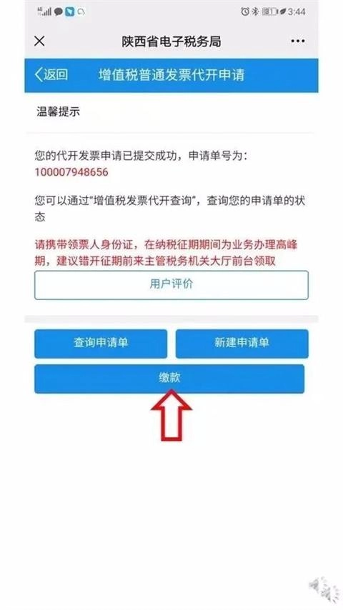 申请单成功提交后,您可直接点击中间的“缴款”按钮完成缴款操作。