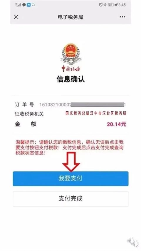 确认税款信息并点击“我要支付”。