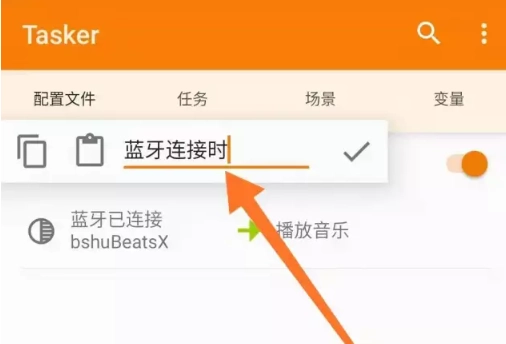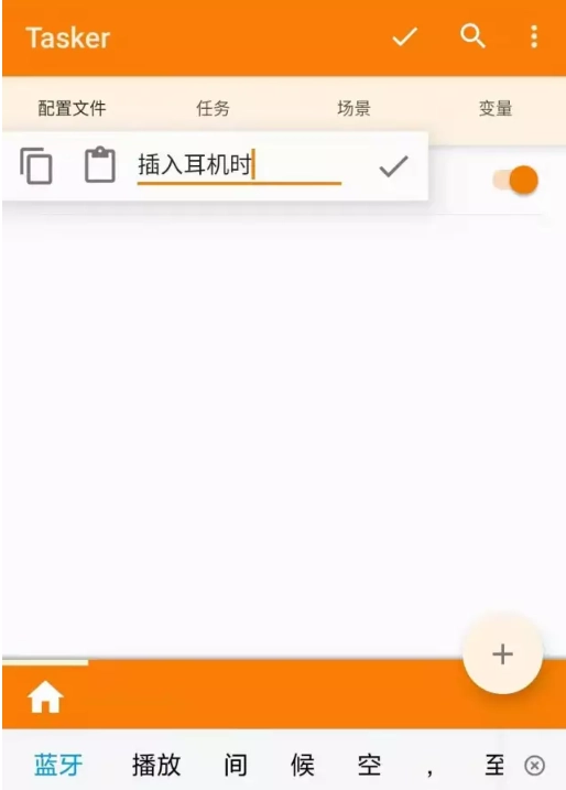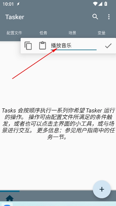 点击右下角的加号按钮,待上方弹出文本框后,为任务输入名称,此处设定的任务名称为“播放音乐”。