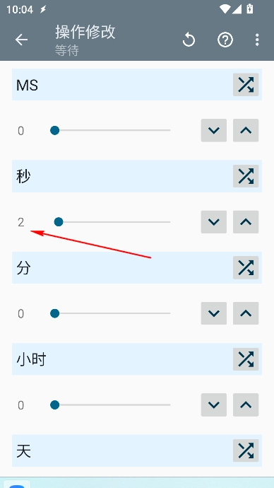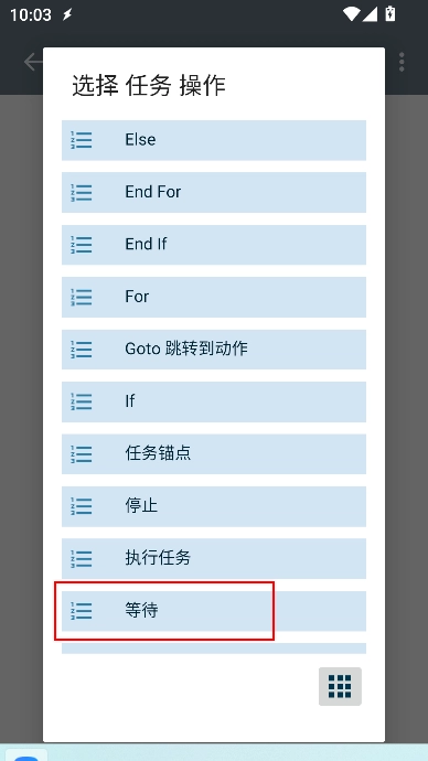 命名完成后会进入新界面,此时点击右下角的加号,在操作类别中选择“任务”,接着找到“等待”选项并将其设置为两秒。
