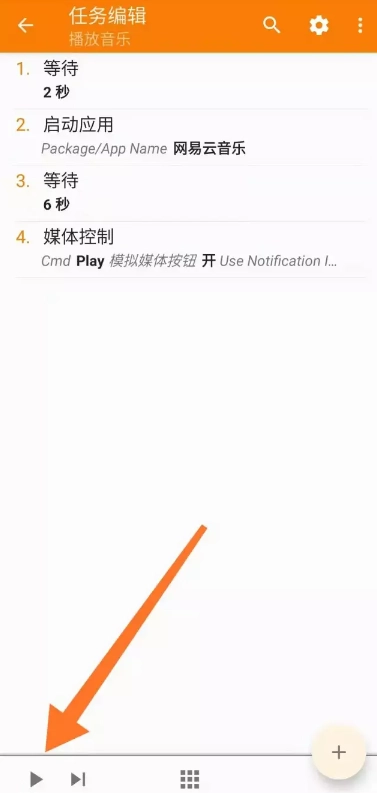 等待两秒钟——启动网易云音乐应用——等待六秒钟——开始播放音乐