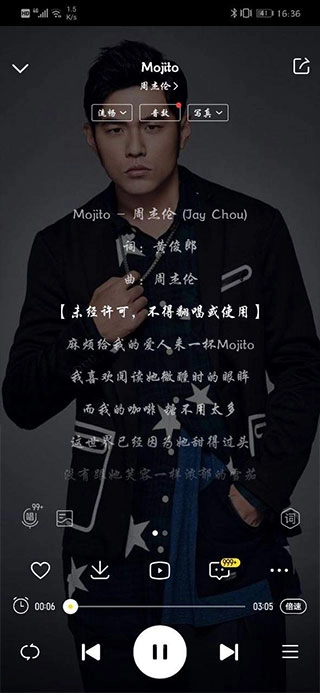 歌词实时同步功能:在播放音乐的过程中,软件系统会自动对应当前播放的歌曲并呈现出歌词内容,用户能够依据显示的歌词进行跟唱,从而增强音乐聆听时的感受。