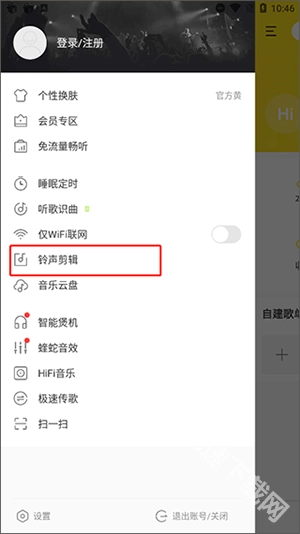 完成酷我音乐的安装后将其打开,完成注册登录操作,进入软件首页后点击菜单,具体操作可参照图示。