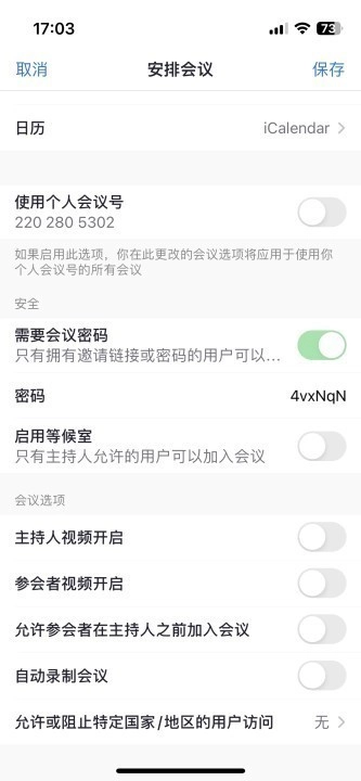 点击“安排会议”,您就能立即进入会议详细列表,其中包含会议主题与时间。