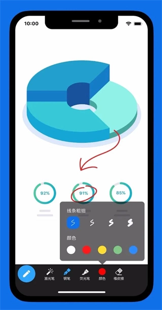 可以在共享的屏幕上进行批注,这样就能像在黑板上写字讲解课件一样,过程直观又清晰。