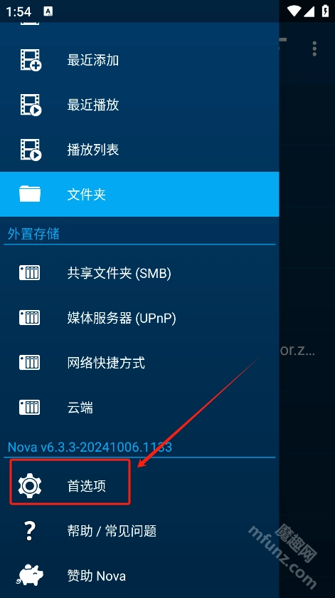 点击Nova Video Player软件内左上角的三条横线图标