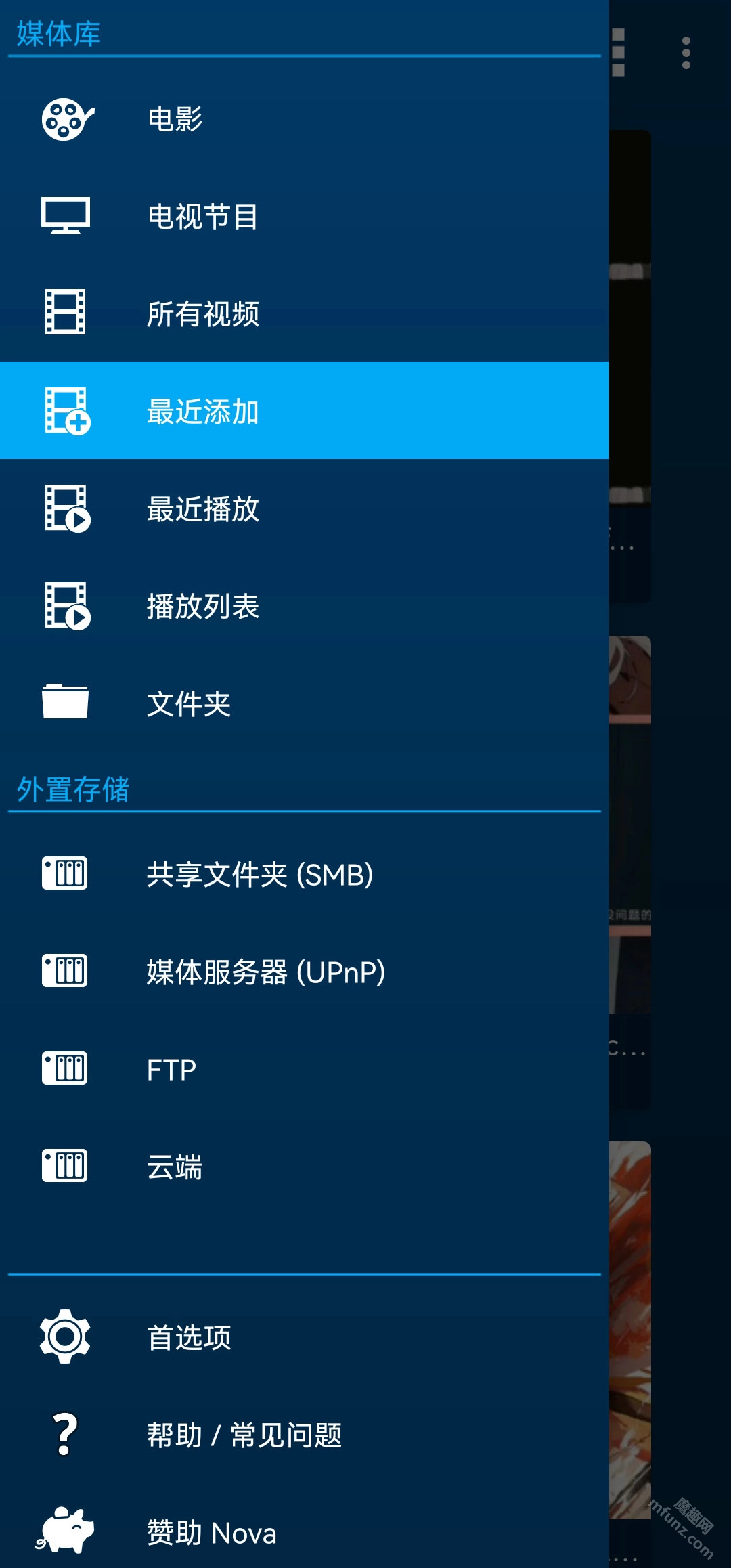 Nova依靠电影数据库TMDB这一外部服务,来获取电影与电视节目的多媒体信息,包括描述以及海报、背景等内容。