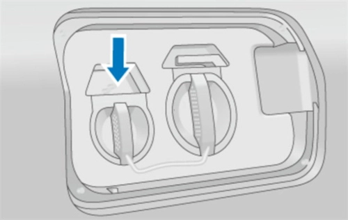 取下交流电充电口的保护盖;(此保护盖在车辆销售时会放置于后备箱储物盒中,您可根据实际需求选择是否安装)。