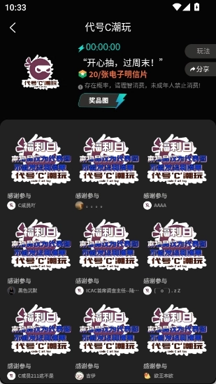 除了拥有丰富的商品资源,“代号C潮玩”App还构建了一个活力满满的互动社区。在这个社区里,你能够和来自各地的手办爱好者交流经验、分享藏品、参与话题探讨。借助社区的凝聚力,你可以更深入地领略手办文化,认识兴趣相投的伙伴,一同体验手办带来的快乐与满足感。