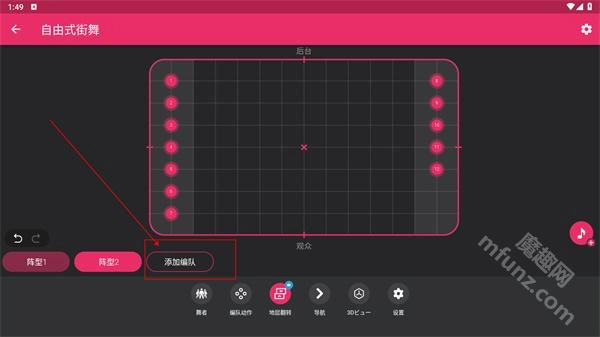 确认人数之后点击结束进入详细的舞蹈编排界面