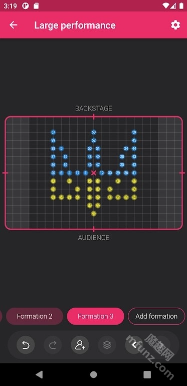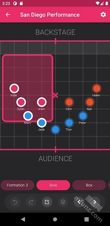 这款软件具备灵活的队形设计功能,用户能够把复杂的舞蹈队形通过网格与数字标记的方式展现出来,便于编舞师针对每个成员开展单独的动线设计,同时也能进行全体的阵型变化设计。