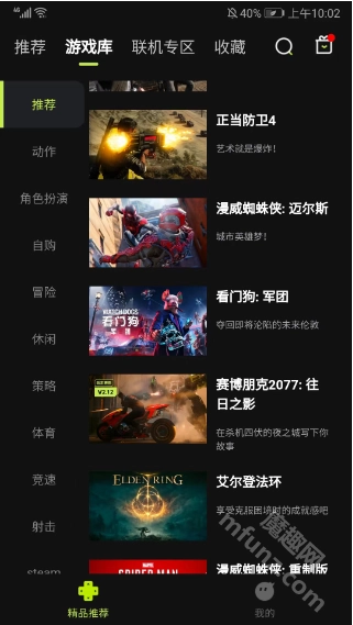 打开闪玩云游后,映入眼帘的便是主界面,这里涵盖了推荐、游戏库、联机专区以及收藏频道等板块,其中推荐频道会呈现系统推荐的游戏。