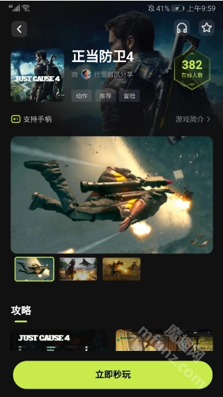 游戏库涵盖动作、角色扮演、冒险、休闲等多种类型,拿【正当防卫4】来说就是其中之一。