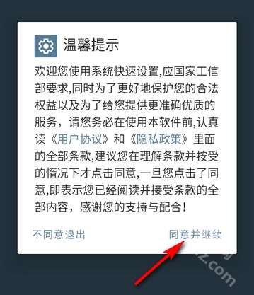 打开系统快速设置点击同意并继续。