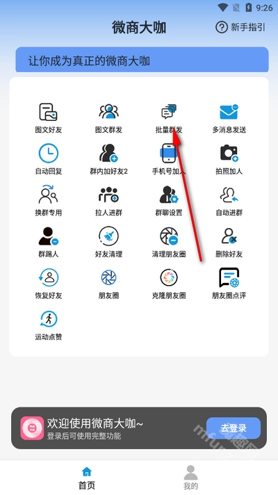 打开软件进入首页,点击批量群发