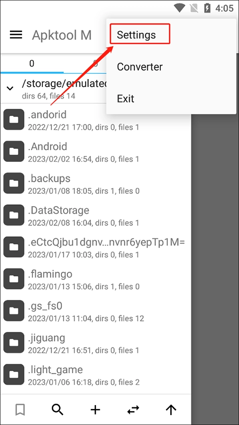 启动apktoolM应用后,点击界面右上角的【三点】图标