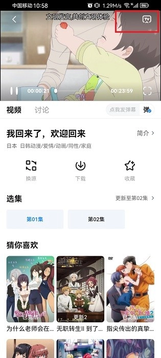 打开在看的视频,点击右上角“投屏”