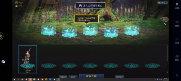打开游戏进入对局,选定全屏游戏模式以及游戏画面窗口。
