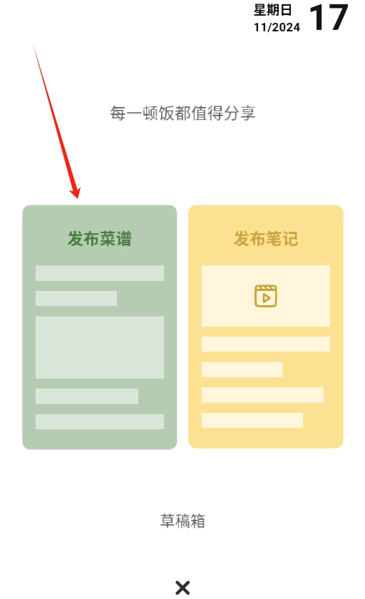 接着在弹出的菜单选项里找到“发布菜谱”这一选项并点击它。