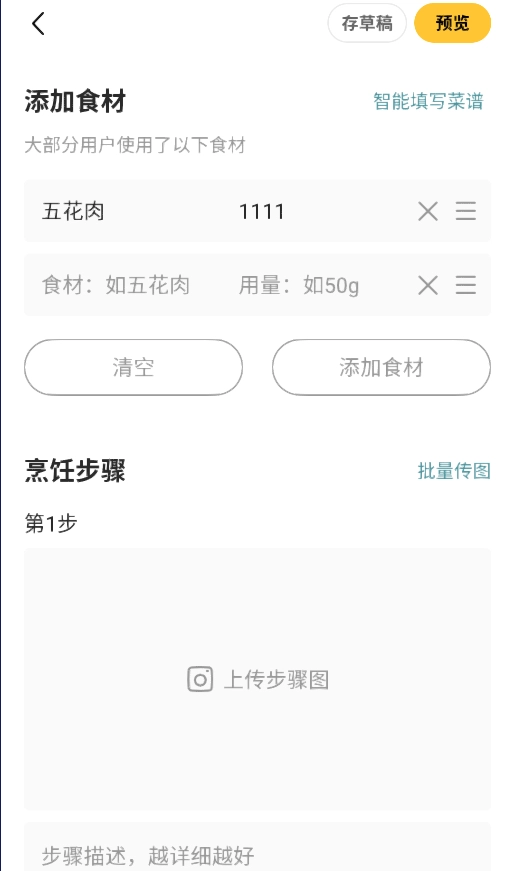 在把菜谱的基本信息都填写完毕之后,点击页面底部标有“发布菜谱”的按钮,就能完成发布操作了。