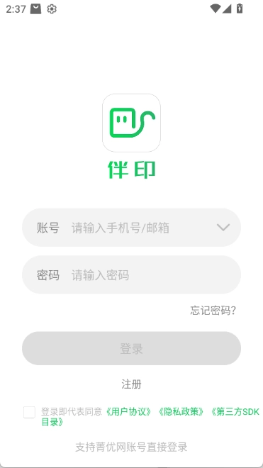 打开伴印应用,开启蓝牙功能,随后连接打印机。连接成功后,在界面右上角就能看到打印机的标识。