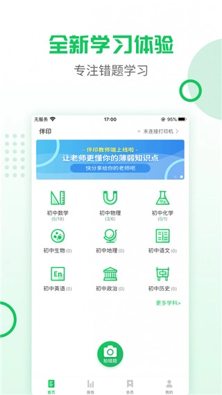 伴印是一款手机错题打印机软件,也叫伴印错题打印机,它整合了错题整理、在线学习等功能,既能协助我们整理错题,还了丰富的中学生题库。借助伴印,孩子们可以系统地整理错题,从而减少重复犯错的情况;其错题难题推荐功能,还能引导孩子举一反三,有效提升学习效率。这款软件使用起来十分便捷,在此推荐给大家。