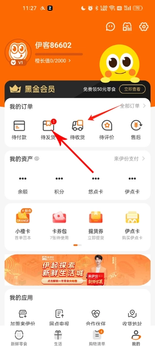 选择订单状态:若商品尚未发货,请点击“代发货”选项;若商品已发货,则点击“代收货”进入。